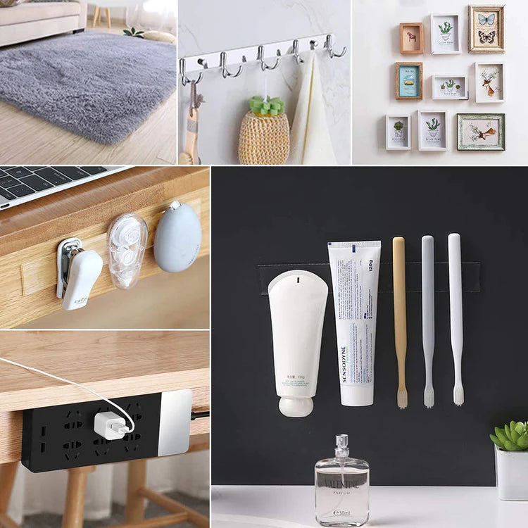 Úsala en cualquier material y para lo que quieras. Puedes colgar un cuadro, sostener los cepillos de dientes, pegar una alfombra que siempre se levanta o arruga, poner una toma de corriente en el lugar que quieras y muchas más opciones.
