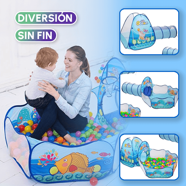 Este innovador juguete combina tienda, túnel y piscina de pelotas en un solo producto, creando un mundo de posibilidades para que tus pequeños exploren y aprendan mientras juegan.